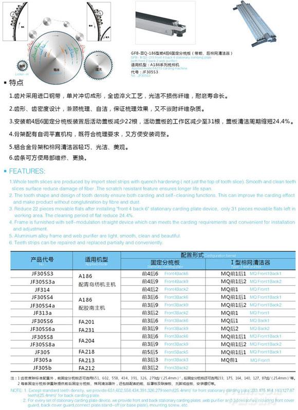 GFB-ⅢQ系列梳棉機(jī)固定分梳板裝置、Ⅰ型棉網(wǎng)清潔器