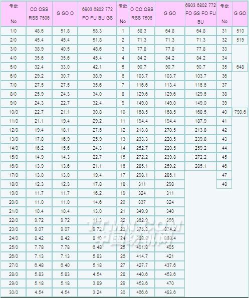 鋼絲圈技術(shù)技術(shù)參數(shù)一覽表