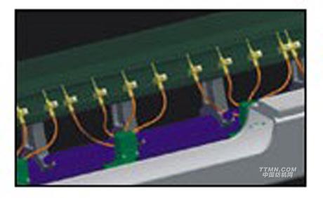 每四個(gè)輔助噴嘴就有一個(gè)電磁閥進(jìn)行控制,從而可精確和細(xì)密地控制噴射時(shí)間,同時(shí)也節(jié)省了空氣消耗量。