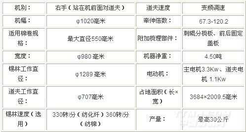 微機(jī)控制檢測(cè)并顯示有關(guān)參數(shù)。設(shè)前后固定蓋板及分梳板,設(shè)有道夫返花、厚卷、斷條等自停、出挑速度、牽伸倍數(shù)檢測(cè),定長(zhǎng)顯示。