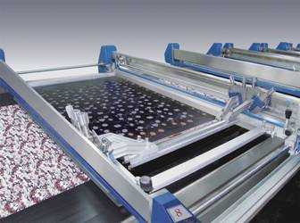 奇正公司最先進(jìn)KC-8000V平網(wǎng)彩色印花機(jī),具有全新的人性化設(shè)計(jì)、獨(dú)特的刮印,適應(yīng)現(xiàn)代印花工藝要求,刮刀可調(diào)角度為0~25°,使刮印漿料滲透效果好。每套色版框單獨(dú)升降,不彈漿料,網(wǎng)點(diǎn)、線條清晰,圖案色彩清晰自然,套色的準(zhǔn)確率100%;采用全電腦控制,速度可達(dá)1500米/時(shí),充分滿足了廣大用戶對(duì)各種新穎織物印花的要求,是印高級(jí)精細(xì)印花布的最佳選擇。