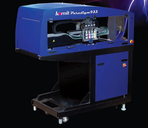 Kornit Paradigm 933可以很好的兼容手動或者自動旋轉(zhuǎn)絲網(wǎng)印花機,同時有能力生產(chǎn)各種各樣的絲網(wǎng)印花和數(shù)碼印花相結(jié)合的產(chǎn)品。這個印花機是成衣印花商和絲網(wǎng)印花商尋找適應不斷增長的時尚需求的最佳解決方案。