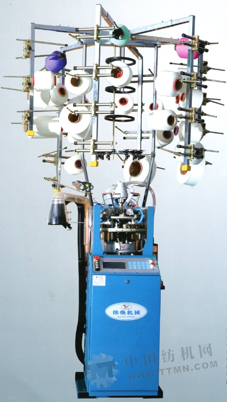 “偉煥”牌WH-12/E7型絲襪機(jī)是由電腦控制的具有四路編織系統(tǒng)的單針筒提花絲襪機(jī),該機(jī)采用獨(dú)立抽風(fēng)機(jī)或中央抽風(fēng)系統(tǒng)進(jìn)行織物牽拉,