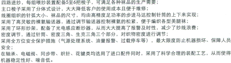 本設(shè)備可編織平紋,1x1、3x1固定網(wǎng)眼,T檔1x1中間加固等多種組織,廣泛適用于尼龍絲、包芯絲、天鵝絨、錦綸、牛奶絲等原料的絲襪織品,織品主要有對對襪、中統(tǒng)襪、長統(tǒng)襪、連褲襪、九分褲、連身襪等。