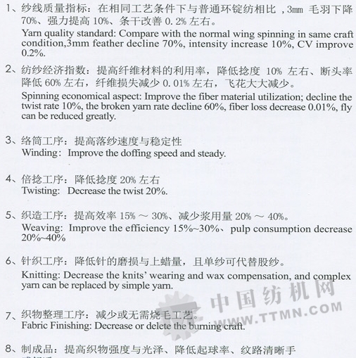 同和公司現(xiàn)有JFA第代四羅拉負壓式緊密紡裝置、JFB第二代高性能四羅拉負壓式緊密紡裝置和JFC第三代網(wǎng)孔羅拉負壓式緊密紡裝置,適用于棉紡、毛紡細紗機的改造和新機配套,可紡制精梳紗、普梳紗、賽絡(luò)紡紗、竹節(jié)紗等品種-并能適應(yīng)純棉、化纖、混紡、天絲等特種纖維的紡紗需要。同和緊密紡裝置為國內(nèi)知名紡織企業(yè)和國外印度、印尼、巴基斯坦、孟加拉、越南等紡紗設(shè)備改造,為國內(nèi)外知名紡機企業(yè)主機配套,全球30%的用戶正在使用同和緊密紡裝置,同和緊密紡裝置的產(chǎn)量、品種、質(zhì)量均居世界領(lǐng)先地位。