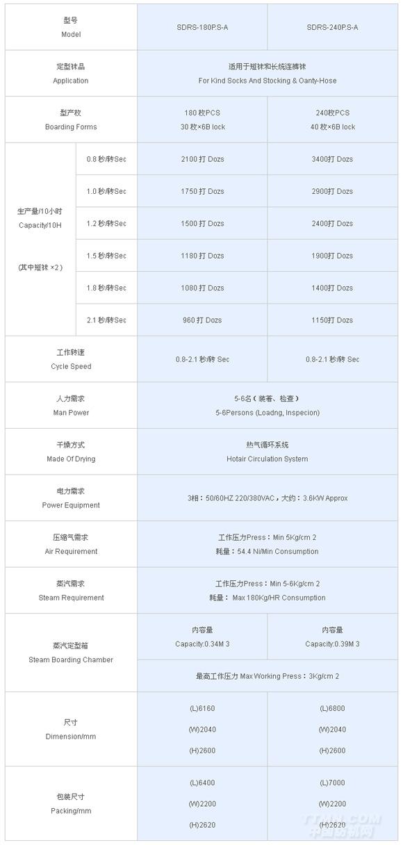 該類產(chǎn)品包括:SDRS-180P.S-A、SDRS-240P.S-A,適用于短襪和長統(tǒng)連褲襪。
