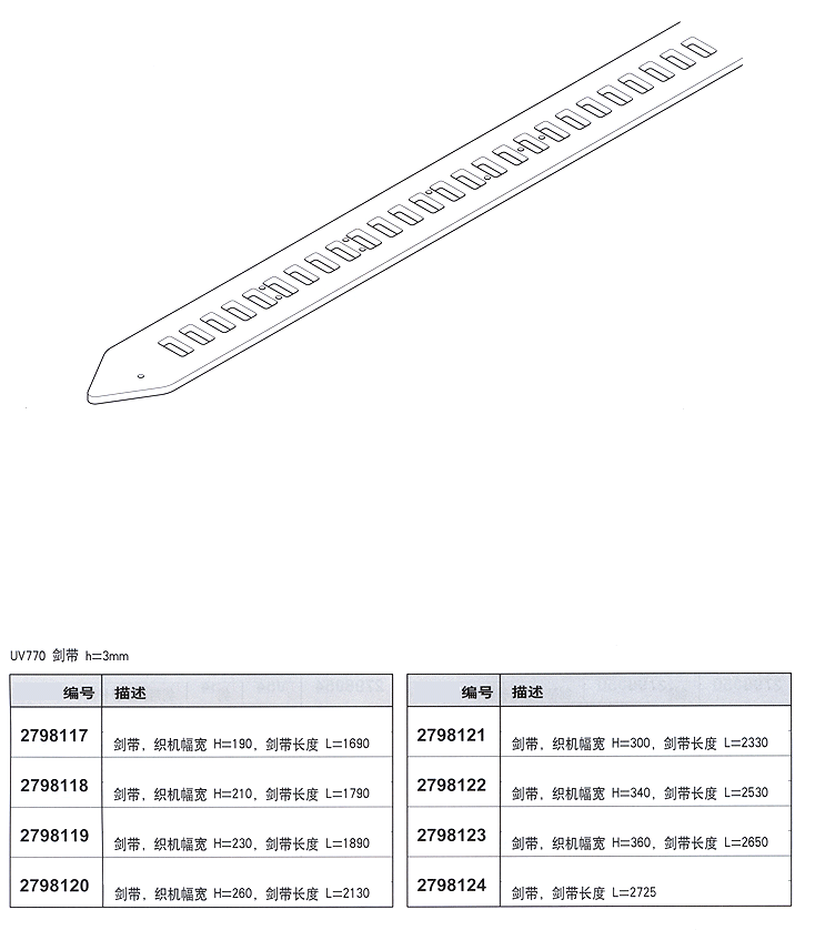 您所在的位置:紡機網(wǎng) > 產(chǎn)品庫 > UV770-h=3mm劍帶