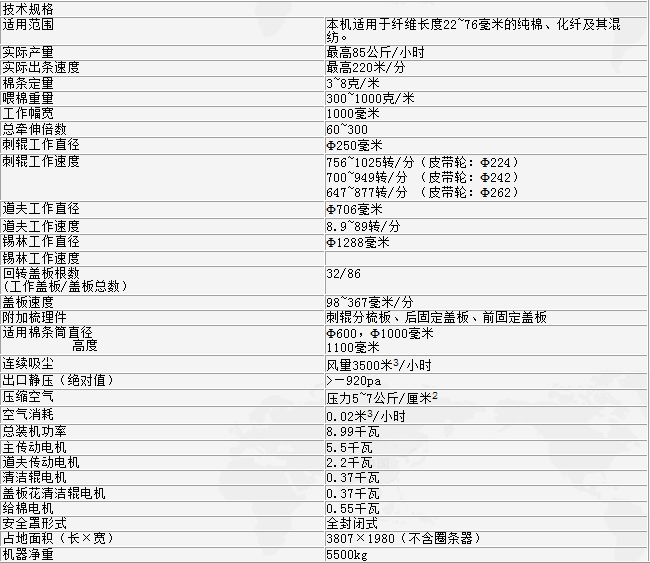 ·適應(yīng)雙棉卷或棉箱喂入;