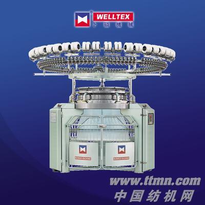 本機(jī)採(cǎi)用封閉軌道及闊針踵三角設(shè)計(jì),配有成圈、集圈和浮線三角,中心調(diào)整裝置(整體式三角座升降結(jié)構(gòu))使高速織物密度調(diào)整方便、快速;常備有不同規(guī)格針距的針筒,更換方便,更適合不斷變化的針織布市場(chǎng)需要??缮a(chǎn)高品質(zhì)且厚薄不同的各類平紋布,如絲蓋棉、排紗彩條,滌棉交織,也可生產(chǎn)單、雙珠地網(wǎng)眼布、凹凸組織等。而更可編織變化珠地、柔姿布、單衛(wèi)衣、斜紋、人字花及四跑道凹凸組織。另加配氨綸裝置可做彈力平紋,如增配互換件則可轉(zhuǎn)換為三線襯緯衛(wèi)衣機(jī),而由於進(jìn)線路數(shù)多尤以排紗彩條更適合。
