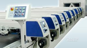 該機(jī)在導(dǎo)帶和刮刀的驅(qū)動定位上,全面的采用了現(xiàn)代高精度的計(jì)算機(jī)CNC數(shù)控伺服定位技術(shù),導(dǎo)帶主傳動系統(tǒng)采用雙伺服電機(jī)驅(qū)動。由兩臺進(jìn)口大功率、全數(shù)字、高精度交流伺服電動機(jī)通過兩套歐洲原裝進(jìn)口的高精度低背隙的減速機(jī),在高精度CNC數(shù)控系統(tǒng)的控制下對導(dǎo)帶實(shí)施精密拖動,該交流伺服電動機(jī)配有13萬線/轉(zhuǎn)的光電編碼器,導(dǎo)帶精度可達(dá)±0.1mm。