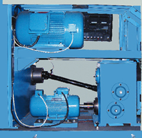 (二)傳動系統(tǒng):SXF1492粗紗機采用四個電機獨立傳動,分別傳動錠翼、羅拉、卷繞和龍筋升降,大大簡化了傳動機構。取消了鐵炮粗紗機車頭傳動齒輪箱、捻度變換齒輪、成形齒輪、龍筋升降齒輪等。調整工藝方便。減少保全保養(yǎng)的工作量。