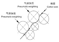 1.取消原有的機(jī)械式加壓模式,通過比例閥對(duì)壓力進(jìn)行控制,實(shí)現(xiàn)線性增壓,改善粘卷程度,確保棉條成卷質(zhì)量。