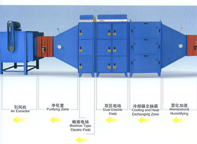 凈化原理是利用靜電場種德電暈放電,使煙氣的塵粒帶上電荷,借助靜電場種德庫侖力把這些荷電德塵粒分離后捕捉于集塵板(正極載)上。含油煙和粉塵廢氣通過這個電場時,油煙和粉塵半粒子在正板短德時間內(nèi)因噴裝俘獲氣體離子后導(dǎo)致荷電,受電場作用向正極集塵板動,從而顯現(xiàn)分離效果。