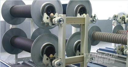 獨立的卷繞單元,織軸卷繞采用變頻馬達(dá)+上下浮動式張力輥+張力電位器實現(xiàn)漿紗機經(jīng)紗恒張力卷繞的電子控制裝置(專利號:ZL200510041380.4,ZL200520074331.6),可正反向卷繞,適應(yīng)雙織軸織機AB軸的要求。