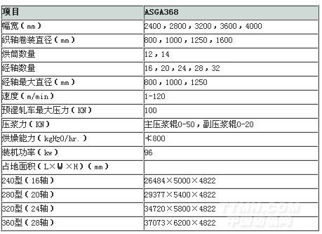 ASGA368型九單元傳動預(yù)濕漿紗機主要規(guī)格及技術(shù)參數(shù)