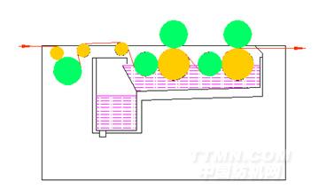 三輥式引紗+雙浸四壓式上漿機(jī)構(gòu)示意圖