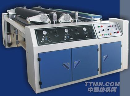 第二組加壓機(jī)構(gòu)(靠烘房一側(cè))由上漿輥、壓漿輥兩輥組成,均為丁腈橡膠輥,上漿輥為高硬度橡膠輥(SHA98)。壓漿輥采用氣缸雙側(cè)同步加壓,壓力:0-40KN,具有兩級(jí)切換和線(xiàn)性加壓功能。