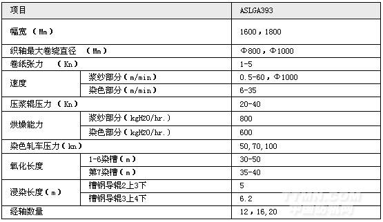 ASGA393 型系列漿染聯(lián)合機(jī)主要規(guī)格及技術(shù)要求