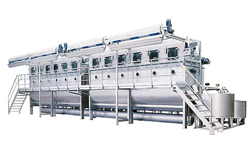 •ECO-38染色機的「J」形儲布槽裝載被處理的織物。滿載時的水比低至1:5。所有無需高溫處理的織物都可以在ECO-38處理。處染普通的織物時可以選擇每管載量為250公斤的型號。而其它對循環(huán)時間有特殊要求的可以選擇每管載量為120~160公斤的型號.