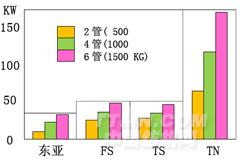 ▼染色機(jī)廠家品牌容布量和耗電量比較  ( 單位:KW )