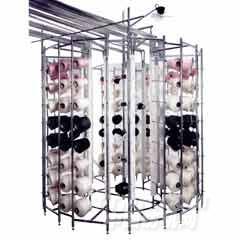 風(fēng)扇除塵紗架是結(jié)合本公司D型紗架以及5個風(fēng)扇馬達(dá)的除絮系統(tǒng)所組成的圓管型組合紗架;紗線通過導(dǎo)管輸出,減少了飛絮的形成。