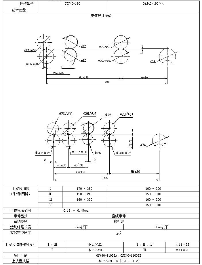 QYJ40-190, QYJ40-190×4型搖架技術(shù)參數(shù)