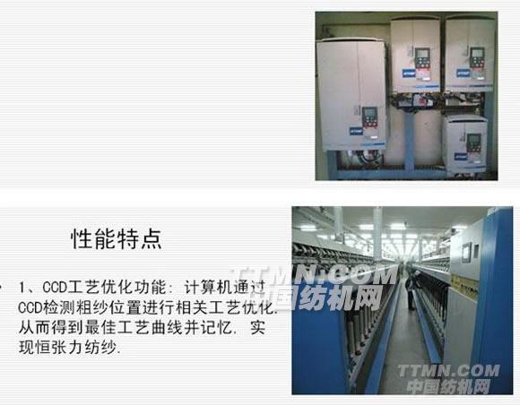 機型概況:該機型采用現(xiàn)金的PLC、工業(yè)計算機控制技術(shù)和工程電子齒輪技術(shù)替代傳統(tǒng)粗紗機的成形機構(gòu)、錐輪機構(gòu)、差速機構(gòu)以及除牽伸以外的所有工藝配換齒輪,是目前國內(nèi)最先進機電一體化高速懸錠粗紗機。