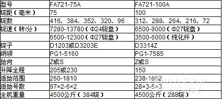 FA721-75A,100A系列環(huán)錠捻線機,適用于棉、棉與化纖、混紡紗及純化纖的捻線加工,供機織和針織用線。