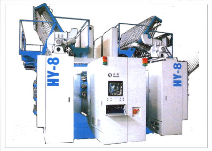 HY-8型高速彈力絲機(jī)是宏源公司根據(jù)國際上假捻變形技術(shù)的發(fā)展趨勢自主開發(fā)的新型全自動落筒型機(jī)。該產(chǎn)品的自動化、機(jī)電一體化程度很高,適應(yīng)現(xiàn)代化企業(yè)的需要。最高機(jī)械速度達(dá)1200m/min。