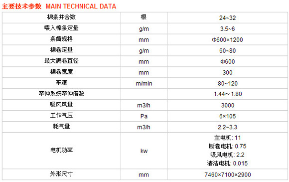 條筒位于導(dǎo)棉平臺(tái)一側(cè),操作方便,高架導(dǎo)條,積極喂入,有效防止棉條的不良牽伸,牽伸機(jī)構(gòu)走棉方向與導(dǎo)棉平臺(tái)一致,棉條進(jìn)入牽伸機(jī)構(gòu)前實(shí)現(xiàn)轉(zhuǎn)向。