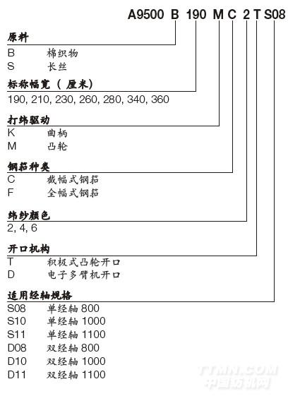 A9500噴氣織機(jī)主要技術(shù)規(guī)格