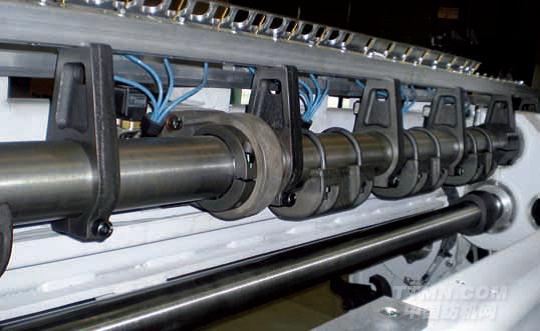 應(yīng)用了不同于其他競(jìng)爭(zhēng)對(duì)手的獨(dú)特設(shè)計(jì)理念,A9500噴氣織機(jī)筘座的驅(qū)動(dòng)可以選用曲柄和共軛凸輪兩種方式,以分別滿足對(duì)復(fù)雜產(chǎn)品織造和高速織造的要求。經(jīng)過大量的工廠測(cè)試和意達(dá)研發(fā)部門的杰出工作,A9500噴氣織機(jī)的梭口設(shè)計(jì)實(shí)現(xiàn)了筘座靜止角與綜框運(yùn)動(dòng)的完美結(jié)合,最大程度地增加了用于引緯的時(shí)間,提高了緯紗飛行的穩(wěn)定性,有效減少了壓縮空氣的消耗量。