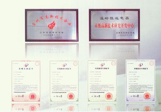 我公司于2007年被評(píng)為“臺(tái)州市高新技術(shù)企業(yè)”,授予并設(shè)立“市級(jí)高新技術(shù)研發(fā)中心”,2008年又榮獲“浙江省科技型企業(yè)”。