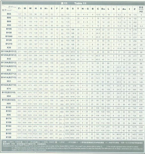 BW,BWY,BWD,XW,XWY,XWD 型單級(jí)擺線針輪減速機(jī)外形,安裝和連接尺寸Outline, Installation and Connecting Size of Model BW,BWY,BWD,XW,XWY,XWD,Single-Grade Cycloidal Pinwheel Speed Reducer