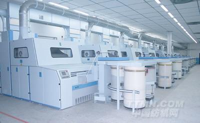 青島清梳聯(lián)博采眾長,以薄喂輕打、早落少碎、棉結(jié)雜質(zhì)短絨兼顧為理念,采用抓、開、混、清、梳的高效短流程設(shè)計(jì)。抓棉機(jī)抓取深度和行走速度變頻控制,無級調(diào)速,實(shí)現(xiàn)精細(xì)抓?。桓咝Сs的單軸流開棉機(jī),著重加強(qiáng)預(yù)開清能力,柔和清除雜質(zhì),除雜效率在25%~30%之間,做到了早落少碎,減輕了后道清棉機(jī)的負(fù)擔(dān),清棉機(jī)實(shí)現(xiàn)“輕打”,少纖維損傷,減少了短絨和棉結(jié)的產(chǎn)生,提高制成率。流程中無凝棉器設(shè)計(jì),完全依靠氣流輸送棉流,實(shí)現(xiàn)無間斷連續(xù)喂棉;風(fēng)機(jī)和羅拉打手全部采用變頻調(diào)速,工藝運(yùn)轉(zhuǎn)效率100%,耗電可以節(jié)約30~40%。 作為老牌梳棉機(jī)生產(chǎn)基地,青島宏大推出的JWF1205型梳棉機(jī),實(shí)際產(chǎn)量可達(dá)100公斤/小時,適用于氣流紡,三刺輥設(shè)計(jì)、梳理區(qū)面積增加20%、先進(jìn)的CAN通訊技術(shù)和伺服系統(tǒng)的應(yīng)用是實(shí)現(xiàn)高產(chǎn)高速的保證;JWF1207型梳棉機(jī)單刺輥結(jié)構(gòu)、順向給棉,適用于環(huán)錠紡,產(chǎn)量最高可達(dá)100公斤/小時。JWF1205型、JWF1207型高產(chǎn)梳棉機(jī)已經(jīng)成為青島宏大主打機(jī)型。