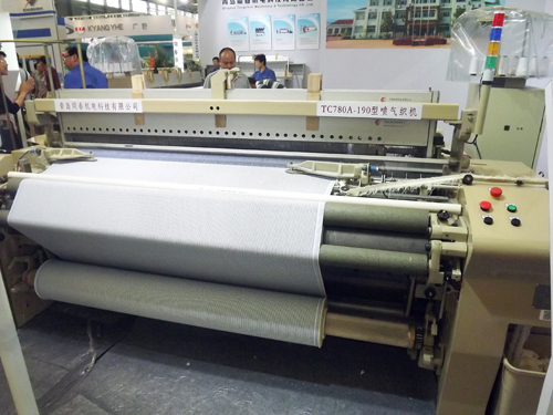 青島同春機(jī)電科技有限公司在此次展會(huì)上展出了TC780A-190型高速噴氣織機(jī)等產(chǎn)品。TC780A系列噴氣織機(jī)是公司研發(fā)的另一種新型噴氣織機(jī)。由于采用了高剛性結(jié)構(gòu)的機(jī)架、大直徑的織軸齒輪以及內(nèi)裝在油浴中的積極式送經(jīng)驅(qū)動(dòng)軸等,使織機(jī)進(jìn)一步實(shí)現(xiàn)了高速化,可以更加靈敏地適應(yīng)高密織物的織造要求。
