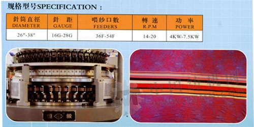 ·搭配三功位提花選針系統(tǒng)(成圈、集圈、浮線),可編制花型范圍不受限制的各種調(diào)線提花織物,廣泛用于高檔服裝。