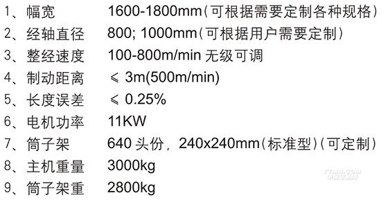 應用多路傳感器線測技術、自動誤差糾偏技術,應用先進的軟件算法,計長誤差控制在025%之內.提高產量.降低整經(jīng)消耗和成本。