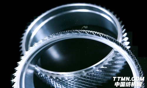 此種齒圈是由金剮鍍針布和鋁鎂合金環(huán)組合而成,重量僅是鋼環(huán)的1/2,可有效的降低能耗和偏重。