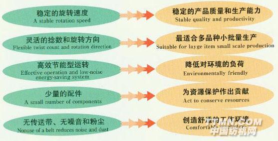 電動(dòng)紡錠上使用小型伺服電動(dòng)機(jī),實(shí)現(xiàn)了高效率單錠驅(qū)動(dòng)方式