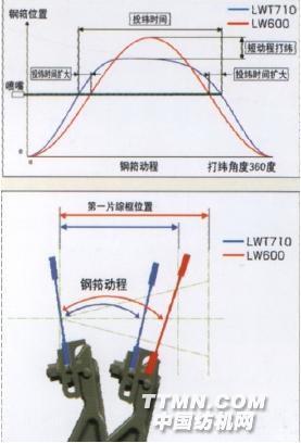 b.采用短動(dòng)程打緯,同時(shí)兼顧了引緯時(shí)間和打緯性能,縮短織口到綜框的距離,有利于高支高密織物織造。新老打緯機(jī)構(gòu)動(dòng)程對(duì)比見圖 5—26;