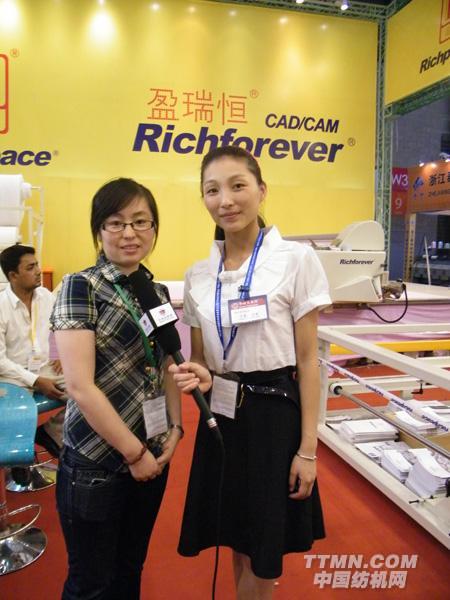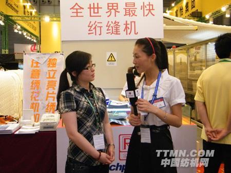 富怡集團(tuán)銷售經(jīng)理任清華女士與中國(guó)紡機(jī)網(wǎng)TTMN.com記者