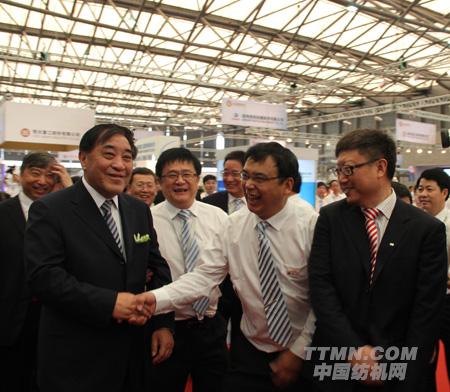 6月12日上午九點(diǎn),展會(huì)一開(kāi)幕,中國(guó)紡織工業(yè)聯(lián)合會(huì)會(huì)長(zhǎng)王天凱率中國(guó)紡織工業(yè)聯(lián)合會(huì)副會(huì)長(zhǎng)高勇、張延愷、徐文英、張莉和中國(guó)紡織機(jī)械器材工業(yè)協(xié)會(huì)理事長(zhǎng)王樹(shù)田等領(lǐng)導(dǎo)一行來(lái)到W1館,在中國(guó)恒天集團(tuán)董事長(zhǎng)張杰、總裁劉海濤、副總裁葉茂新等人的陪同下,分別參觀了立信工業(yè)、Autefa Solutions、 恒天重工、經(jīng)緯股份等企業(yè)的展臺(tái)。