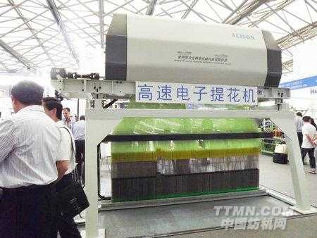 2012年國(guó)際紡機(jī)展上公司展出2臺(tái)ALS16系列電子提花裝置,1臺(tái)為 ALS5120電子提花機(jī),該機(jī)外形美觀(guān),開(kāi)口速度達(dá):600緯/min,前開(kāi)口:50~90mm,后開(kāi)口:75~120mm,可調(diào)節(jié),針數(shù) 5120針。