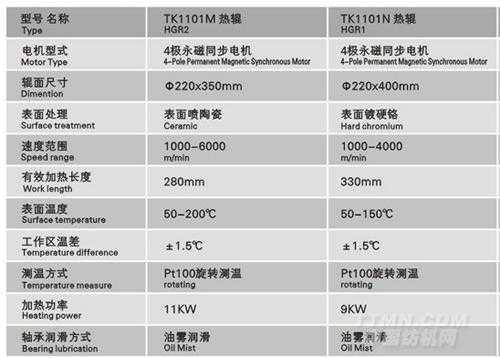 TK 系列熱輥適用于紡滌綸、棉綸、丙綸以及復合絲等各種民用絲。同時還可根據(jù)紡絲品種靈活調(diào)整加熱、拉伸和定型的工藝路線及參數(shù),紡絲纖度范圍40-800dtex。