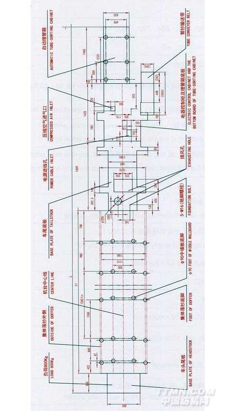 TH578系列緊密紡細(xì)紗機(jī)地腳平面圖
