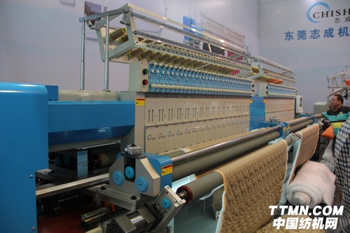 2014年紡機(jī)展上,東莞志成為在展會(huì)中脫穎而出,攜CS64電腦絎縫機(jī)和CS94電腦絎縫機(jī)等精品亮相。其中以CS64電腦絎縫機(jī)最受觀眾關(guān)注。工作人員告訴我們,該產(chǎn)品采用簡(jiǎn)單快捷的花樣編輯軟件,可在短時(shí)間內(nèi)根據(jù)客戶要求完成花樣編輯。新一代上布裝置附加上布小電機(jī),確保布隨時(shí)處于緊繃狀態(tài)使絎縫效果更佳。360度花樣絎縫,電腦存儲(chǔ)有三百種花形供用戶選擇。而當(dāng)絎縫厚薄不同面料時(shí),壓板可整體升級(jí),操作方便。現(xiàn)場(chǎng),我們看到不少客商在其展臺(tái)參觀,其中部分外商正同東莞志成工作人員進(jìn)行圓桌洽談。