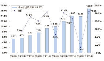 據(jù)統(tǒng)計,國內(nèi)針布銷售額從2000年的5.3億元提高到2009年的16.8億元,年均復(fù)合增長率為13.8%。2010年是紡織業(yè)發(fā)展較快的一年,國內(nèi)針布市場銷售額達(dá)到20.5億元,較2009年增長21%以上。