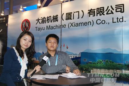 中國(guó)紡機(jī)網(wǎng)記者與大渝機(jī)械(廈門)有限公司代表合影