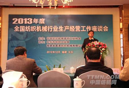 【TTMN訊 涵子/陳明陽整理】2012年12月13日"2013年度全國紡織機械行業(yè)生產經營工作座談會"在福建長樂召開,中國紡織機械器材工業(yè)協(xié)會副理事長呂洪鋼主持了本次會議。